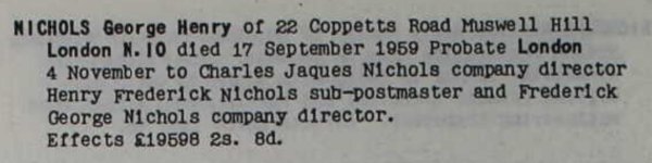Henry Frederick Nichols, 27/05/1905 - 29/07/1966