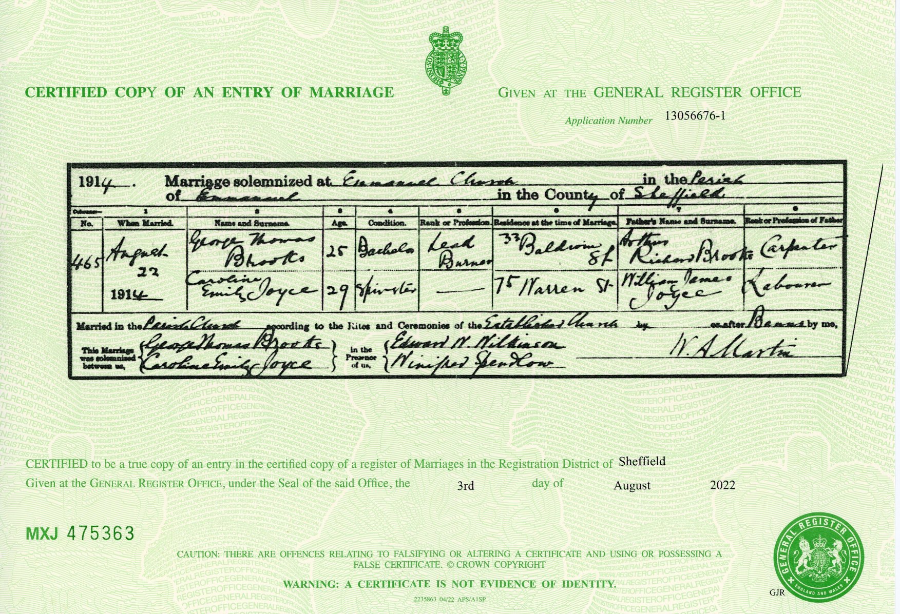 Ernest Alfred Brooks, 27/1/1894 - 1977